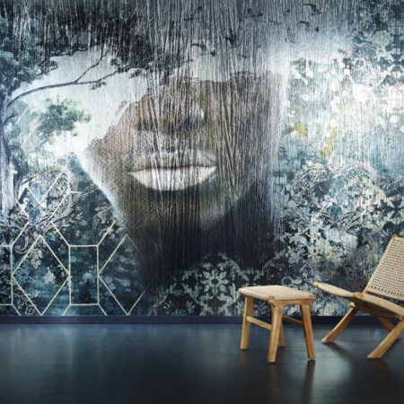 Два варианта цифровых панно, выполненных по технологии "складчатых"/"мятых" обоев с глянцевыми голографическими переливами. На одном из них изображен увеличенный стилизованный портрет самого Паписа, что является определенным симбиозом фотоискусства, дизайна настенных материалов и внесения личного вклада. А другое панно — прямое отражение энергетики западной Африки, в традиционной одежде и украшениях которой присутствует настоящее буйство красок, графических элементов и контрастных сочетаний.